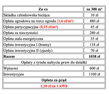 Informujemy, że w 2025 roku wysokość opłat ogrodowych dla działki o powierzchni 300 m² wynosi 1038 zł. Poniżej przedstawiamy rozbicie poszczególnych składników opłaty: